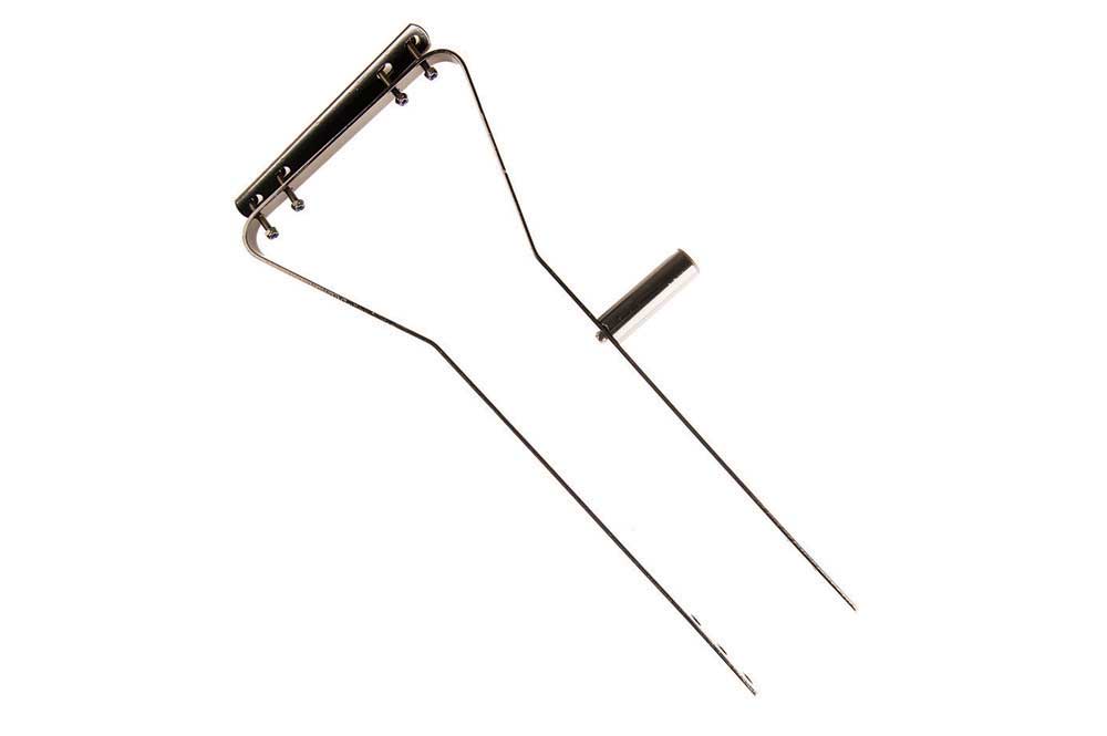 Eine robuste Korbhalterung mit angebrachter Lampenreflektorhalterung.