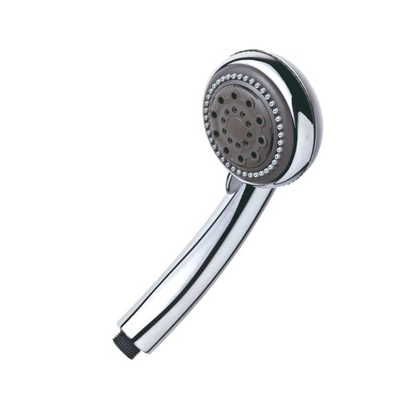 Ein verchromter Duschkopf aus Kunststoff mit drei Strahlarten.